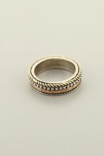 Hand made, two tone band with four different layers of sterling silver and gold combination.