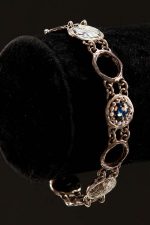 A mix of sterling silver, Roman Glass and handcrafted glass all with a touch of shine that gives this jewelry a glam but easy finish. Is it casual or dressy regardless this contemporary bracelet is one of a kind unique and a part of history.