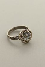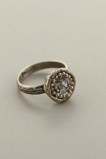 Hand made, sterling silver round ring with Roman Glass and sterling silver beads. One of a kind.
