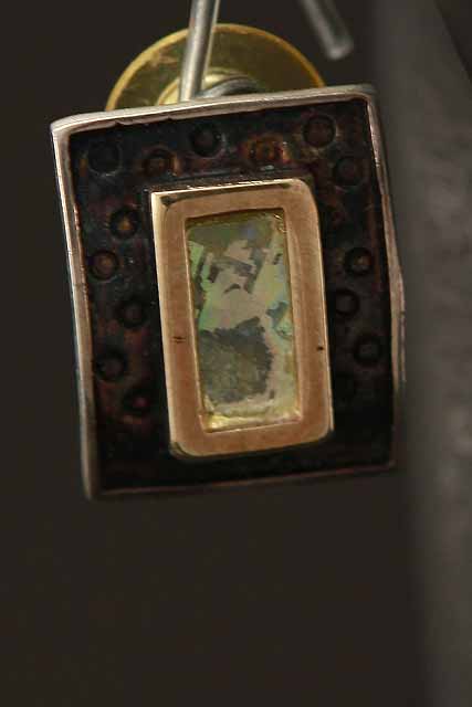 Hand made, two tone, post earrings with Roman Glass. One of a kind earrings.