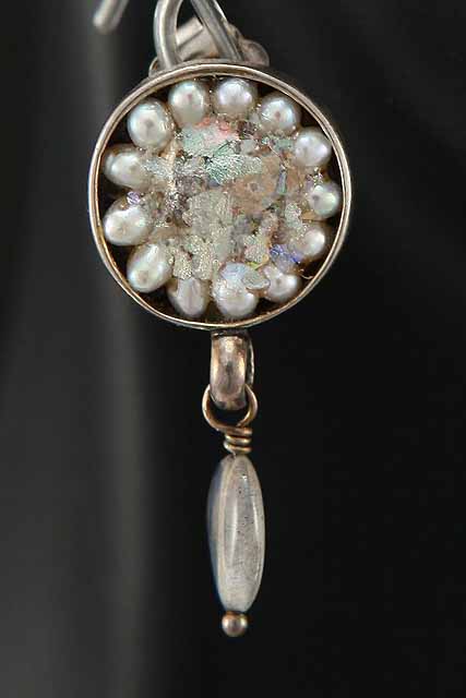 Want some sterling silver post earrings with Roman Glass and white pearls? We have it right here for you. Roman Glass have been a glass that appealed to so many women for its unique colors and shads and its valuable history.