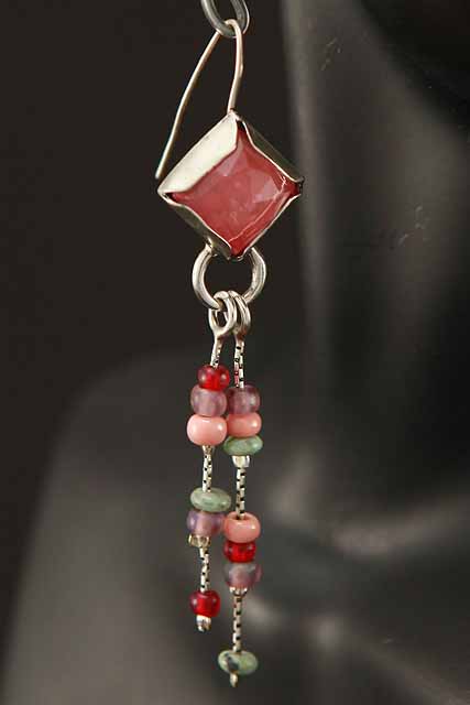 Hand made, sterling silver, hanging earrings with Rose Quartz and a mix of Agates and crystal beads.