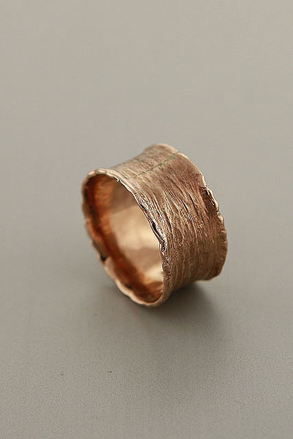 Hand made, unique Rose Gold, none brush band, slightly curved with ruffled edge.