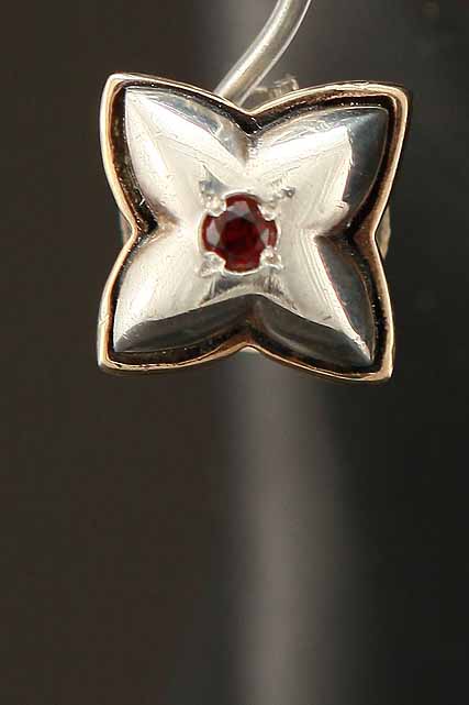 Prepare for any occasion with two tone: sterling and gold of a sexy studded earrings. The silver shine against the gold frame with a twink red Garnet stone to a fun and vibrate look.