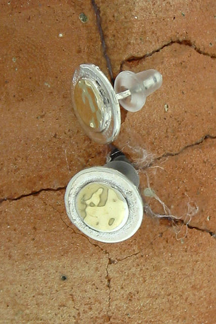Hand made, two tone, sterling silver and gold post earrings. One item only. Earrings: 0.4 in. radius.