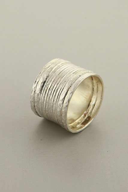 Hand made, sterling silver wide, striped band.