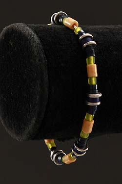 Hand made, sterling silver, beaded bracelet with semi precious stones and a toggle finish.