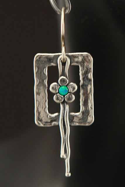 Hand made, sterling silver, hanging earrings with Opal stones.