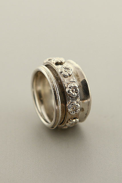 Hand made, sterling silver, wide, slightly hammered revolving band.
