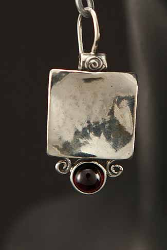 Hand made, sterling silver, hanging earrings with Garnet stones.