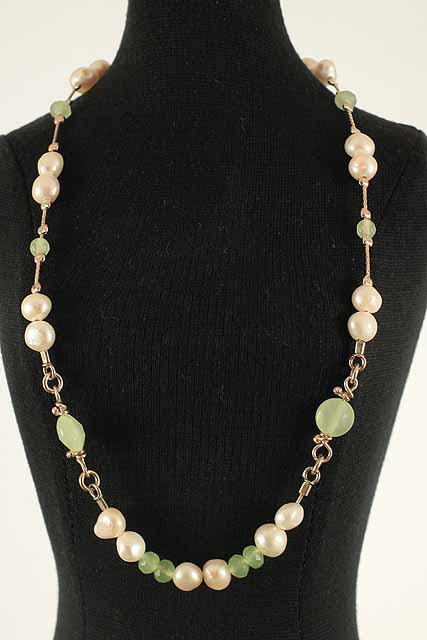 Hand made, sterling silver necklace with white pearls and Apple Quartz stones.
