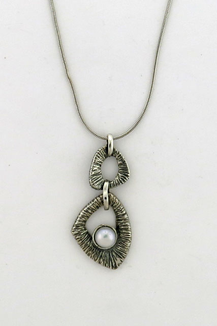 Savor the moment with an oxidized, sterling silver contemporary style necklace that has a snow pearl for a contrast accent.