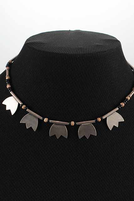 Black and cream gems connecting in this silver necklace. Modern into the Canaanite ancient style that is versatile. This necklace makes the perfect gift to any women.
