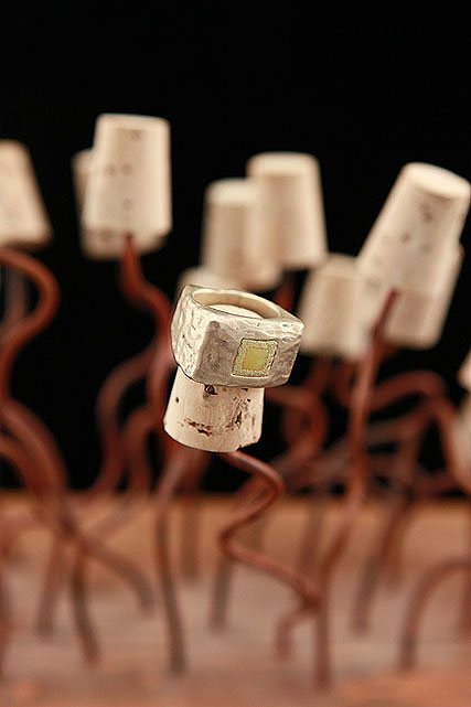 Hand made, unique, 24K gold plated on top of sterling silver, fashion band with Lemon jade stone.