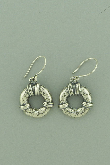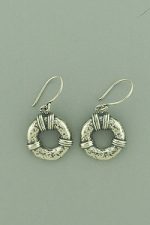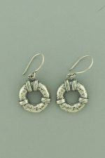 Sterling silver, sculpted, round, hanging earrings.