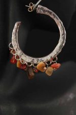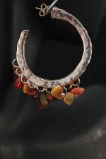 Hand made, sterling silver, hoop earring with semi precious stones and brown Agates stones.