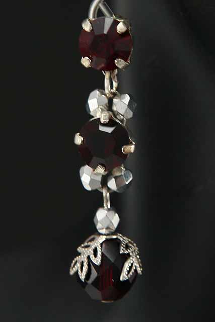 Fashion, Red and Grey Swarovski Crystal, hanging earrings on silver metal.