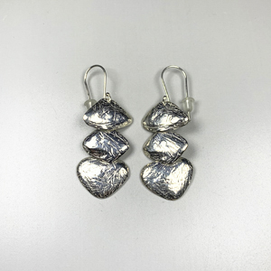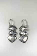 Multi tier sterling silver hanging earrings with a texture design on it surface.
