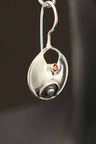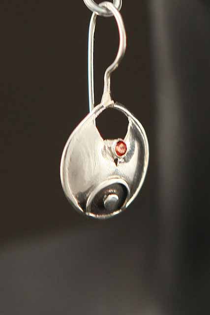 Hand made, sterling silver, hanging earrings with Garnet stones.