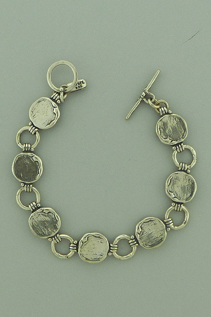 Sterling silver bracelet with round rings with round disk alternating to a toggle finish.