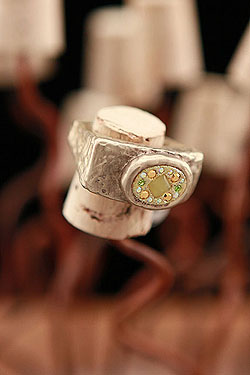 Hand made, fashion, 24K gold plated over sterling silver band with Lemon Jade stone.