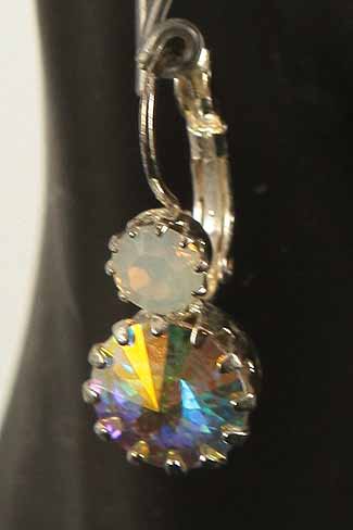 Hand made, silver, hanging earrings with AB Swarovski Crystal stones.