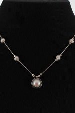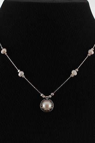 Hand made, sterling silver necklace with white pearls. Every day wear for all occasions.