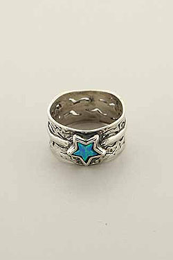 Hand made, sterling silver, sparkled star band with an Opal stone.
