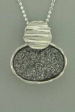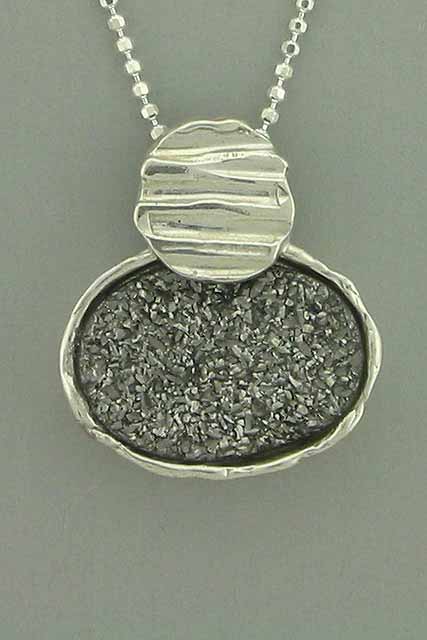 Hand made, sterling silver with an oval Grey Druzy on a dotty thin chain. One item only. Chain: 16 in. long; 17 in. long with pendent.