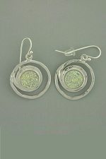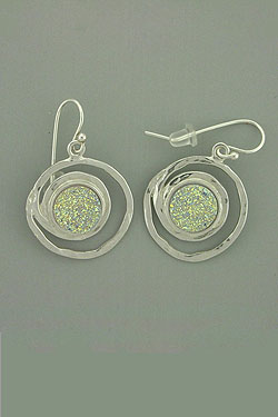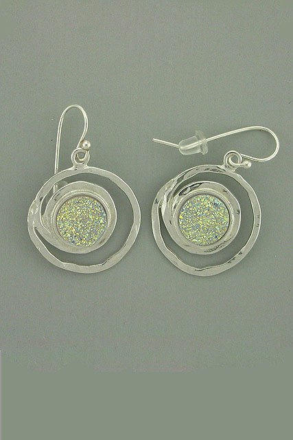 Hand made, sterling silver in two layered circles earrings with White Druzy stones on silver wires. One item only. Earrings: 1.5 in. long.