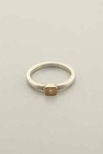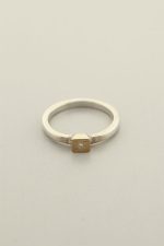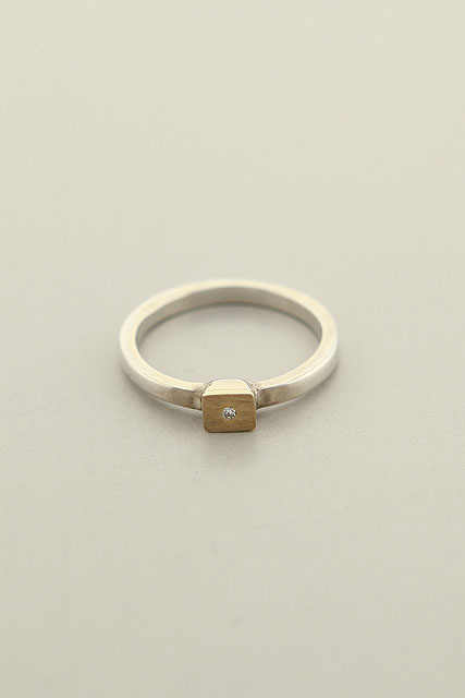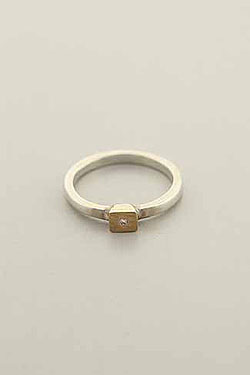 Hand made, sterling silver band with diamond mounted on a square gold top.