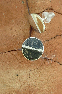 Hand made, two tone, sterling silver and gold post earrings. One item only. Earrings: 0.4 in. radius.