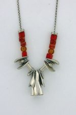 The necklace accessory connection of lasting contemporary fashion is on. This sterling silver with Sponge Coral stones is bright and delight to the eyes.