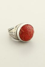 You know it’s going to be a great ring for you once you see it. Sterling silver ring a contemporary dome with Sponge Coral stone – such a warm jewel and delight.