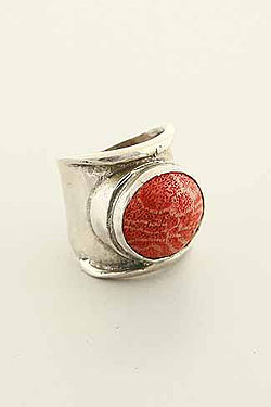 Hand made, sterling silver, contemporary, oval band with smudge edges and a big Sponge Coral.