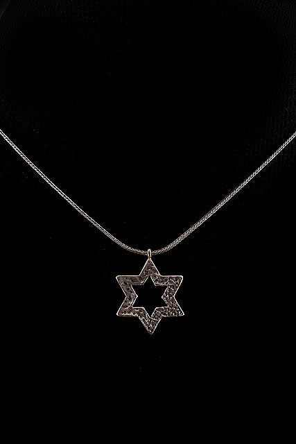 Hand made, sterling silver necklace with Star David Hammered and Oxidize pendant.