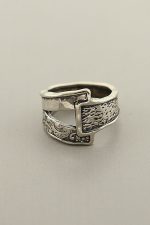 Hand made, sterling silver styled band, oxidized and textured vs. the shiny side.