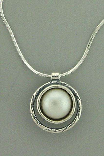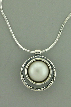 Hand made, sterling silver pendent with white pearls. Necklace: 16 in. long. One item only.