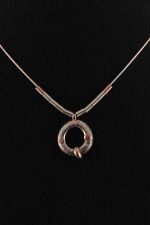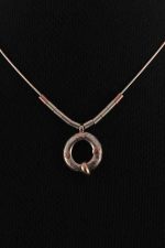 Chain: 15 in. long; Pendent: 1 in. long, 0.75 in. wide.