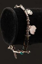 Hand made, sterling silver bracelet with semi precious stones and charms.
