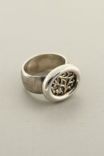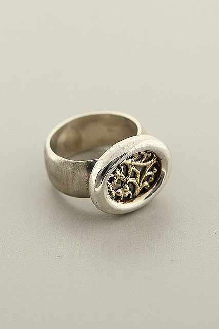 Hand made, two tone band with matt and shiny finish and gold flower vine on top .