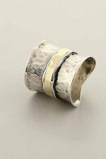Hand made, two tone, contemporary wide band with a gold strip in center.