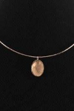 Chain: 14 in. long; Pendent: 0.9 in. long, 0.6 in. wide.