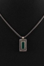 Hand made, sterling silver thick oxidized necklace with Rectangle Green Agate stone.