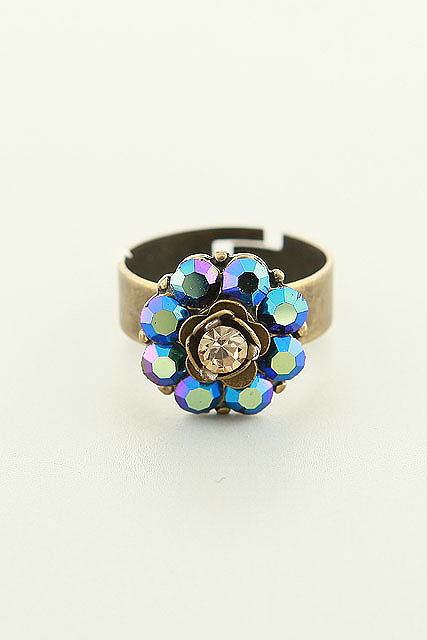 Hand made, flower band of Blue shads colors and Gold Swarovski Crystal stones in hypo allergic metal.