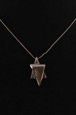 Chain: 16 in. long; Pendent: 1.25 in. long, 0.75 in. wide.
