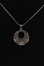 Chain: 16 in. long; Pendant: 1.3 in. long, 1 in.wide.
