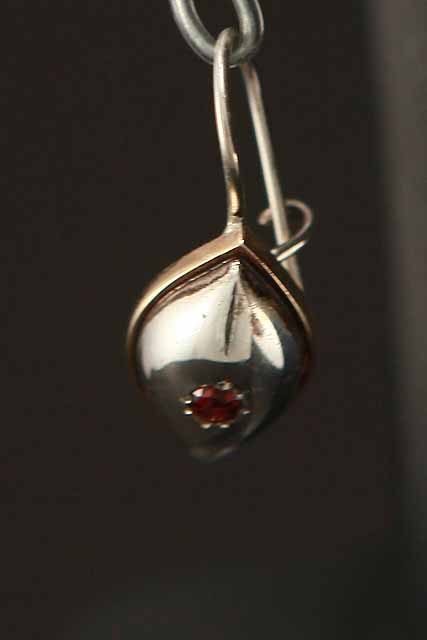 Hand made, two tone, oval hanging earrings with Garnet stones.