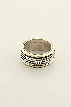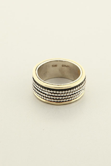 Hand made, two tone, spinner, oxidized band with gold trim edges.