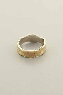 Hand made, two tone band, gold on top of a sterling with wavy edges.